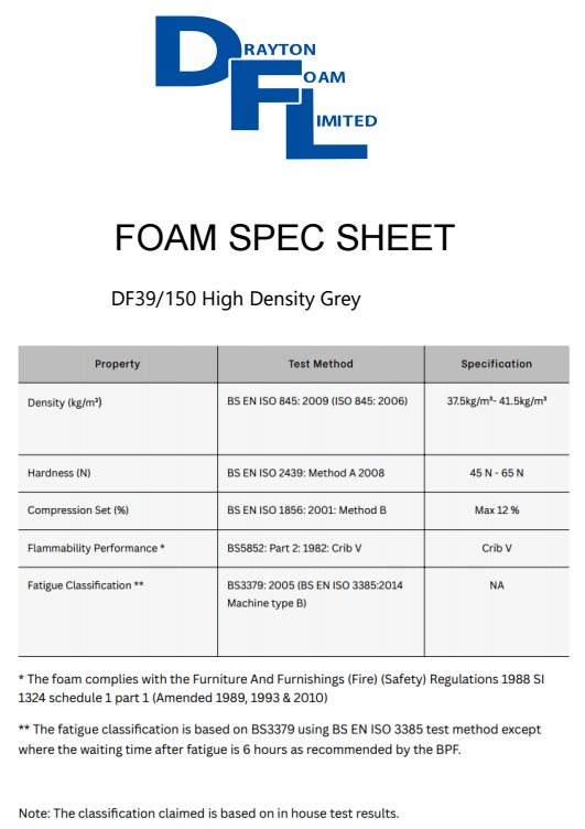 Luxury High Density Medium Grey Foam Sheet - DF39/150 (Grey)