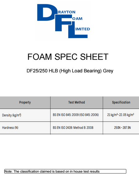 Premium High Load Bearing Packaging Foam - Drayton Foam HLB DF21/250 (Grey)