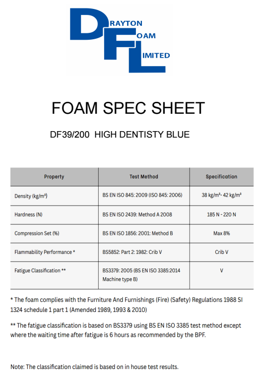 This foam is a Premium High Density seating grade foam. This is suitable for many applications including quality sofa and upholstery seat cushions, boats, caravan bunks/seats, dining chairs, seat pads and camper vans.